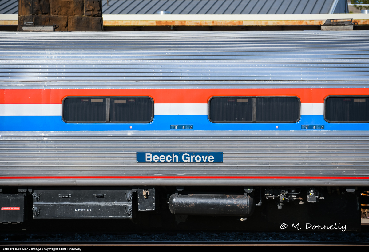 | The Amfleet Office Car, named "Beech Grove" after the facility that created it from wreck damaged cars for inspection and geometry purposes. |