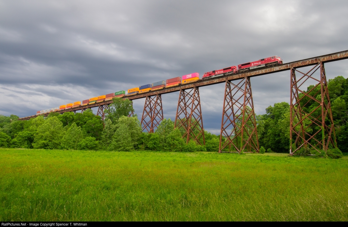 A pair of 9043MACs take the SAHW across Tulip Trestle at Tulip, IN.