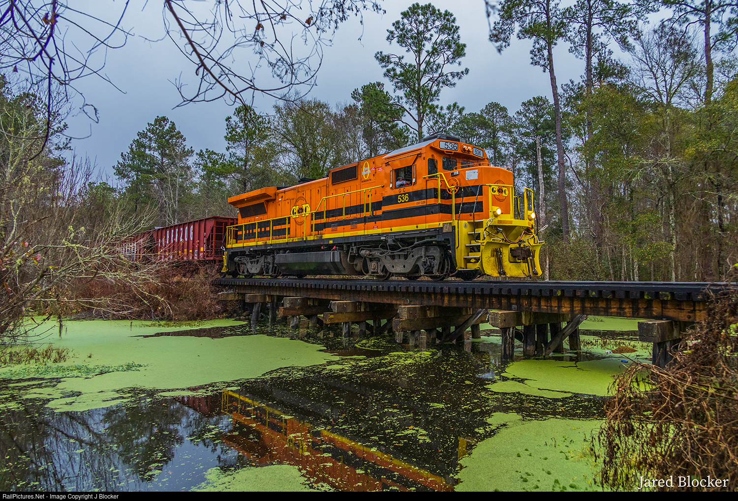 Georgia Central Y204 crosses Swift Creek on the newly rehabbed portion of the old Georgia & Florida Railway. After 40 years of being dormant, the reconnection (using state funds) between Swainsboro and Vidalia is finally made. A couple more ballast trains along with some tamping and hopefully revenue moves will be made soon here.