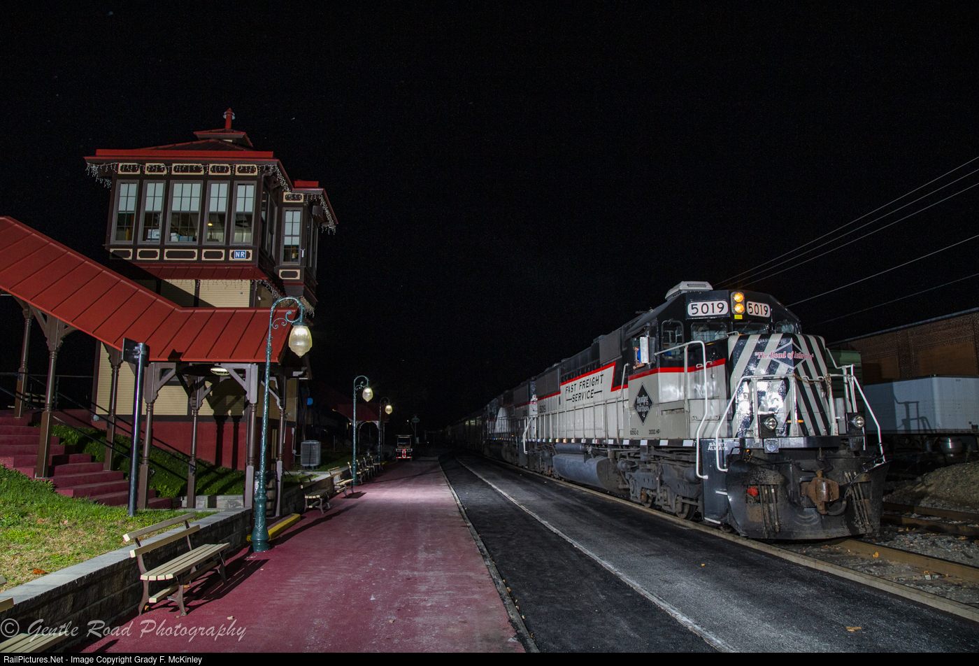 | RBMN #5019 rests at Reading Outer station in Reading, PA after the #425 excursion. Within the hour the train will depart north to Tamaqua to turn the set for the following days #2102 excursions. |