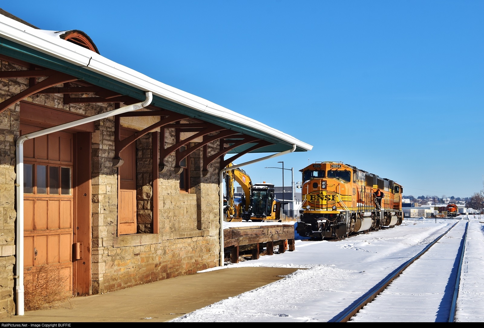 BNSF 9894 (SD70MAC) gets ready to be tied down at the historic depot in Longmont, Colorado. The structure was built in 1898 by the Colorado and Southern Railroad.
