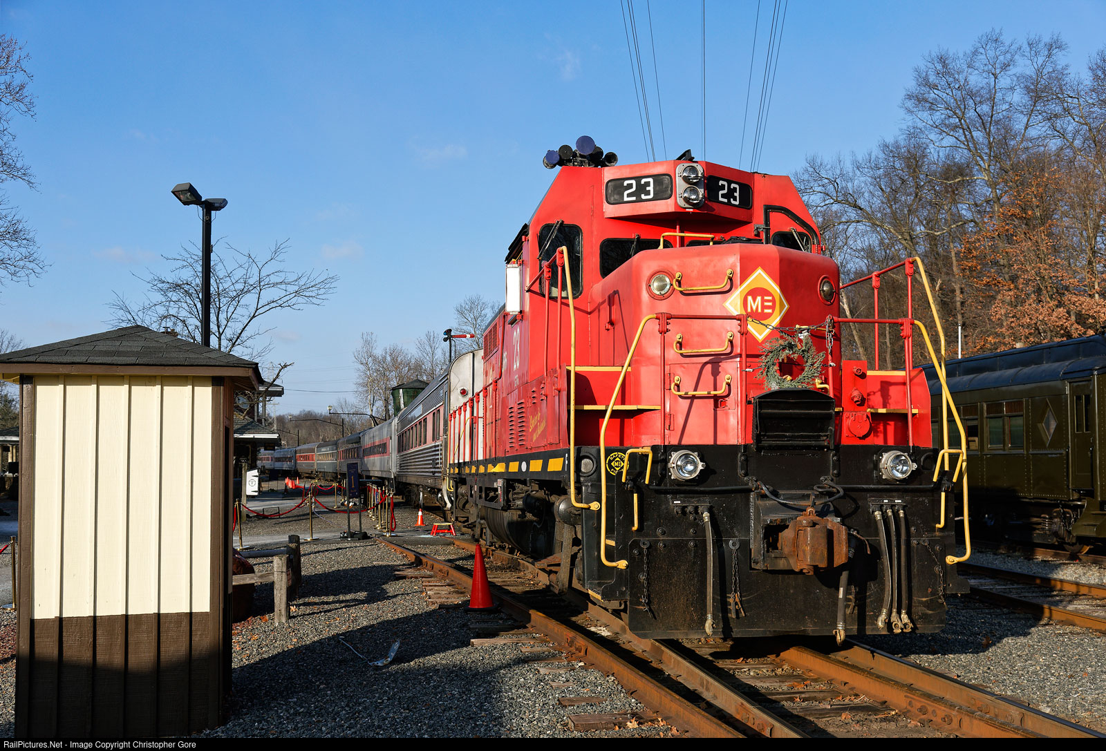 It's all quiet now, but soon crowds will be arriving for Polar Express trips, pulled by Morristown & Erie GP7u #23.