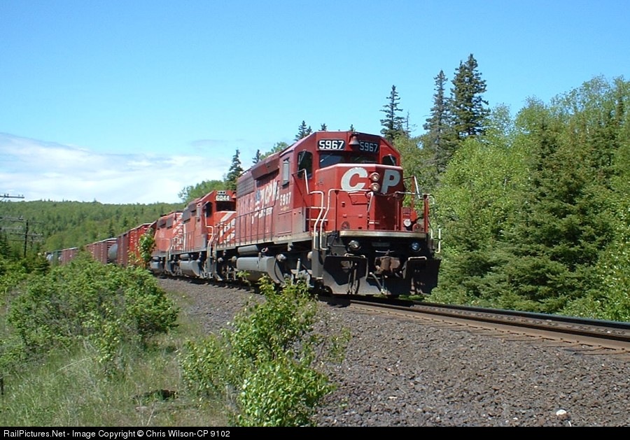 RailPictures.Net Photo: CP 5967 Canadian Pacific Railway EMD SD40-2 at Marathon, Ontario, Canada by Chris Wilson-CP 9102