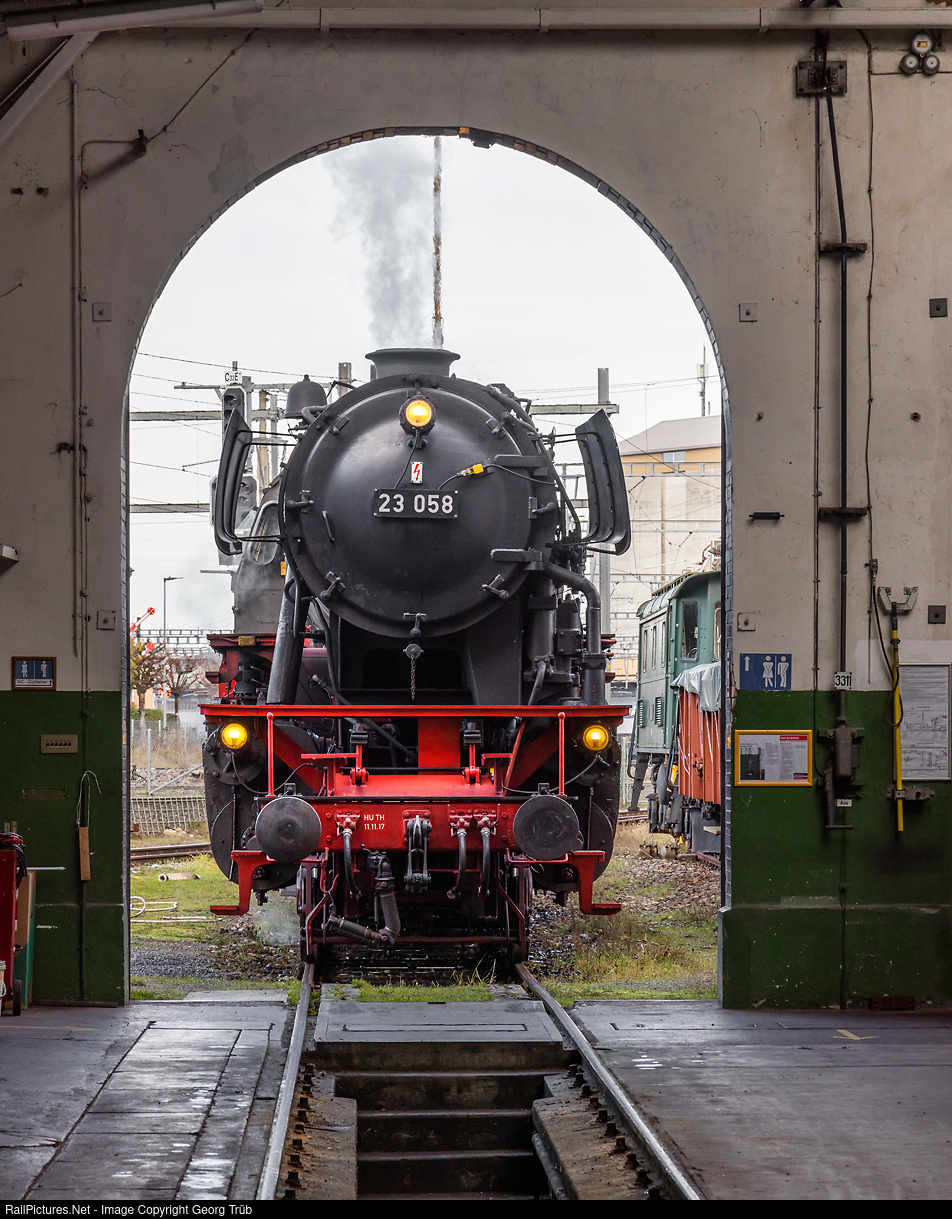 Back in Switzerland for a few days! The 2-6-2 passenger train steam locomotive 23 # 058 was built in 1955 for the German Federal Railroad and was in service there until 1975. In 1976 it was taken over by Eurovapor and came to Sulgen in Switzerland. Based in Heilbronn/Germany nowadays, she came to Sitzerland for some days and is standing iin front of the shed of the Locorama in Romanshorn.