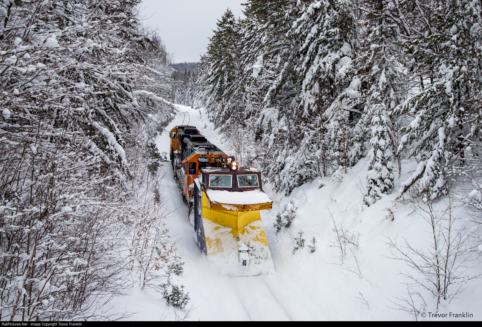 | With CN struggling to keep up with clearing a record snow load in the Muskoka and surrounding areas, they called ONR to lend a helping hand to plow the areas north of Huntsville on the Newmarket Sub. It had been days since any interchange of traffic had taken place in North Bay, so it was in both railways best interest to get it done as soon as possible in an unusual move to say the least. Here they're seen cruising through Scotia with the snow still blanketing everything in sight. |
