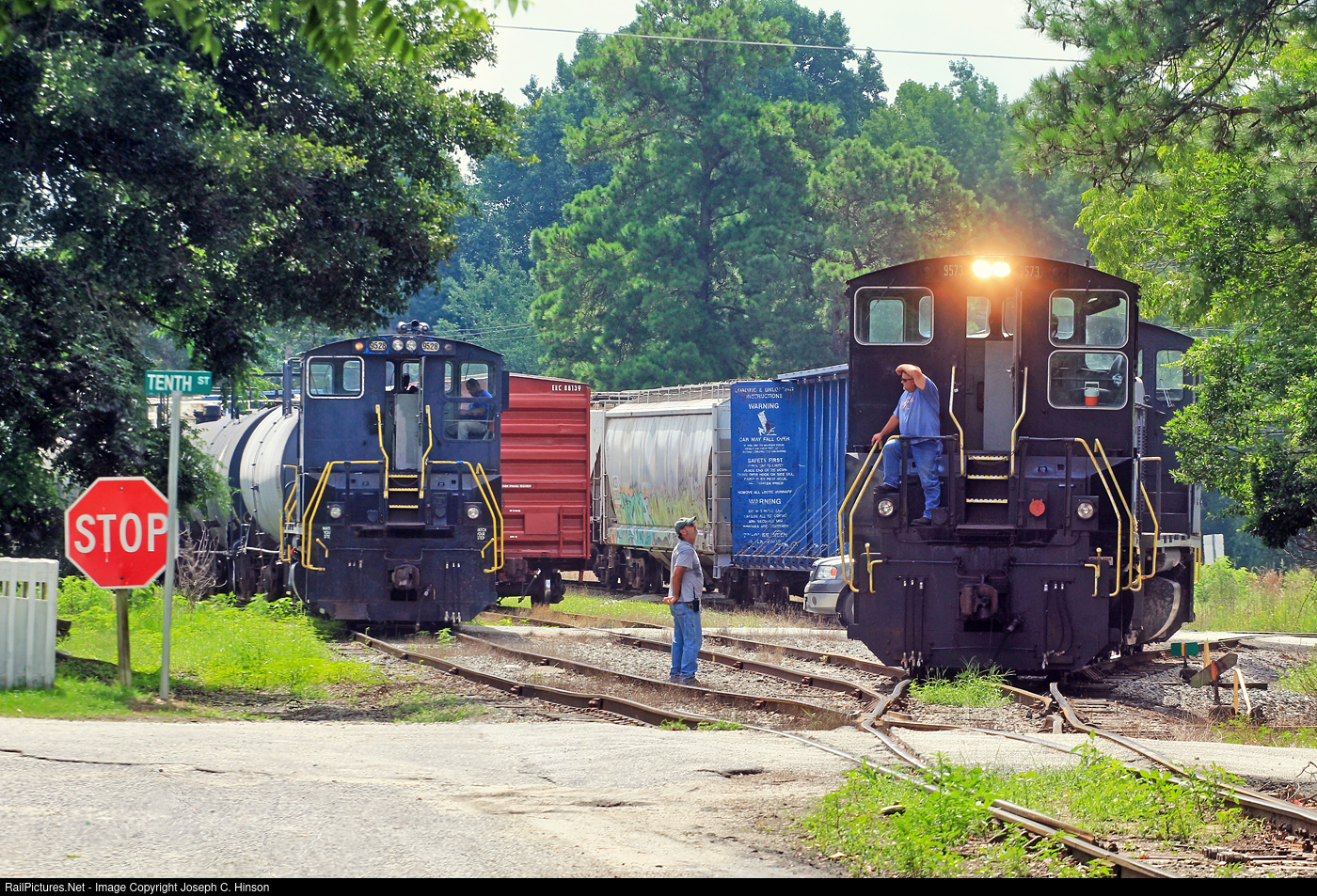 LRS crew has just cut one of the three SW1500s off their train to take some tank cars into Laurinburg. The two motors on the right will couple onto the rear of the train.