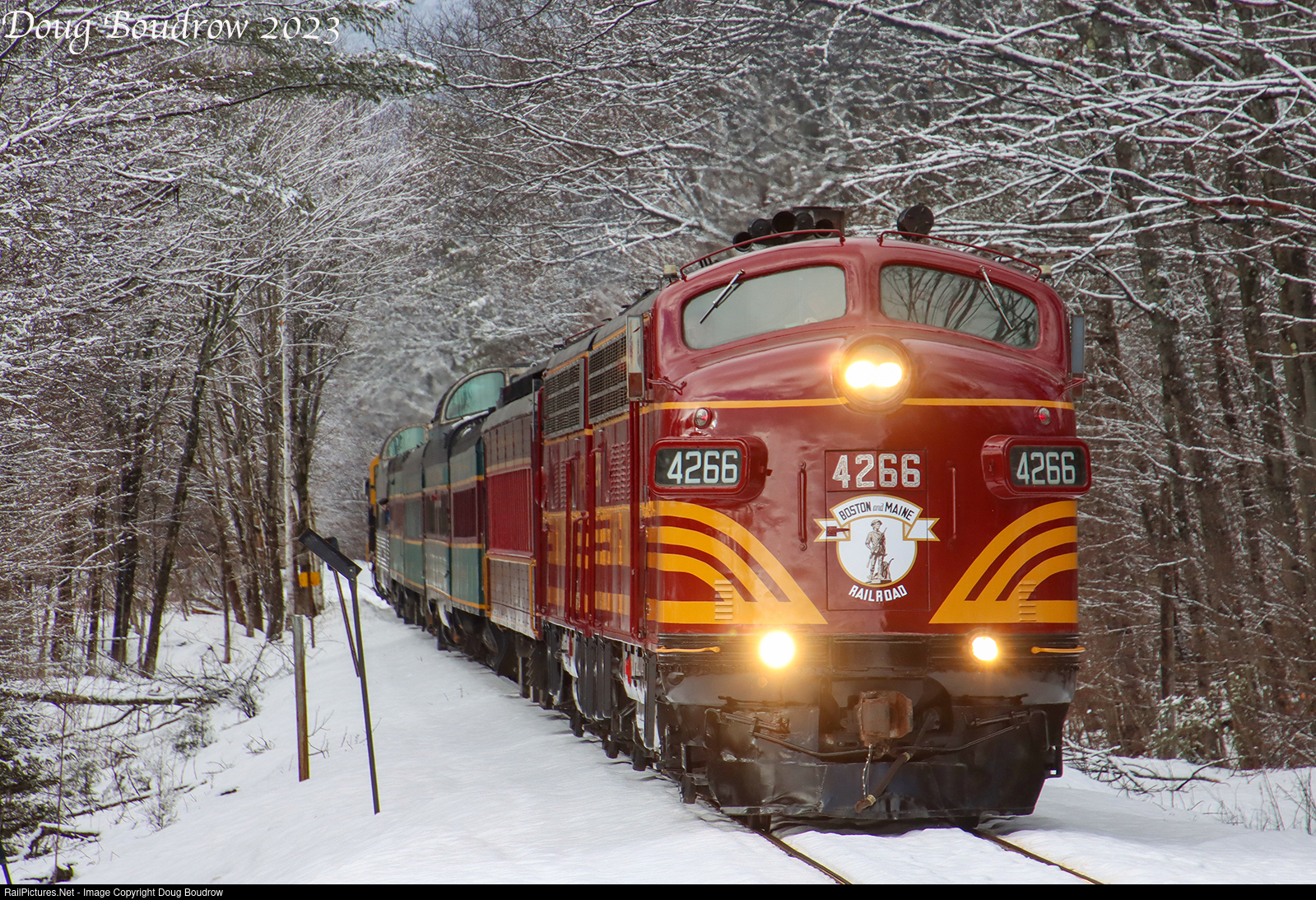 | On January 7th, 2023 the Mass Bay Rail Enthusiasts chartered a special train on the Conway Scenic Railroad. The trip featured the matching Boston & Maine 1949 F7As owned by the 470 Railroad Club.