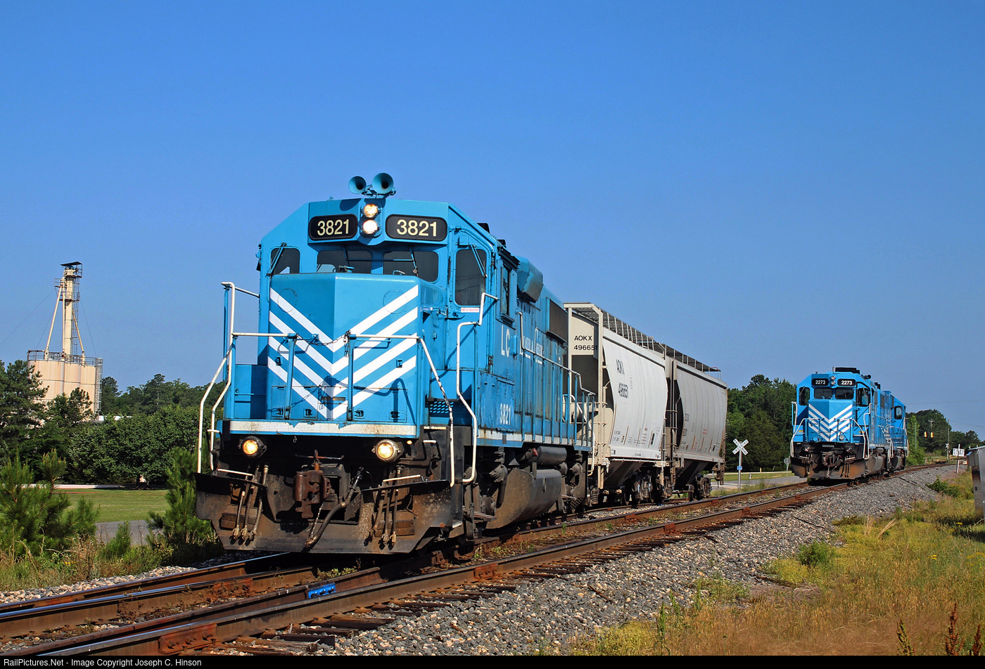 | Lancaster and Chester Railroad works the Klerk's Plastic spur in Richburg, South Carolina. Space on the spur limits it one locomotiv and two cars at a time. A tight curve also limits the number of axles the locomotive and cars can have. |