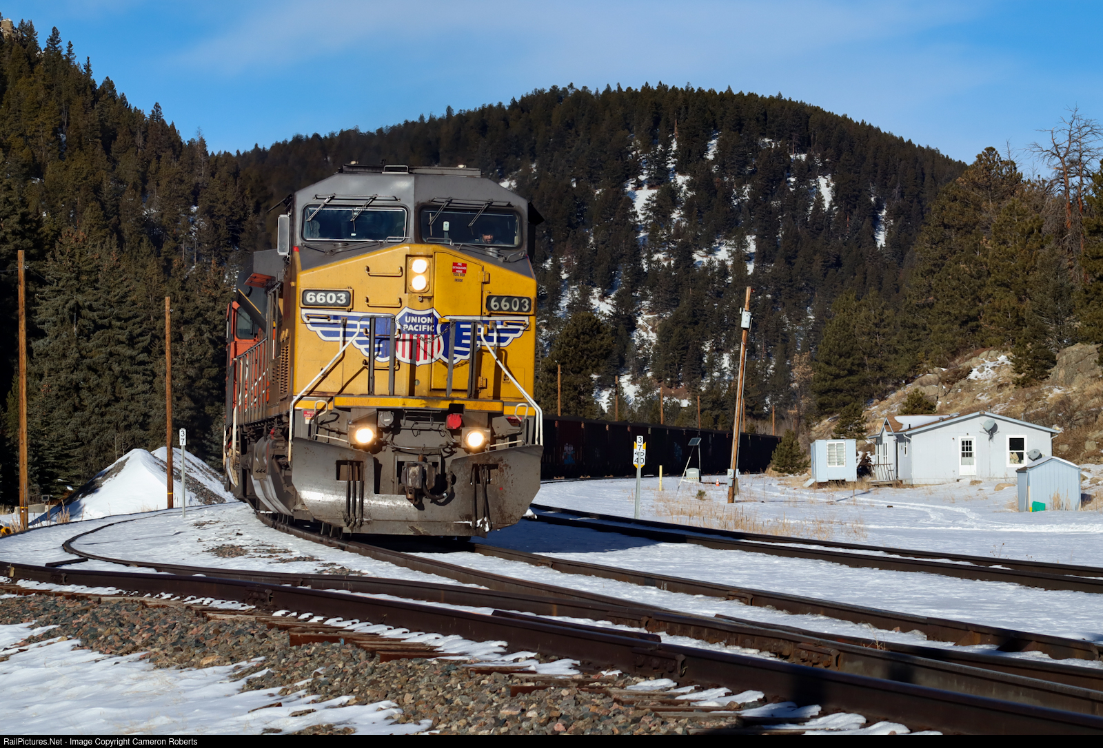 | UP 6603 departs Pinecliffe, CO after waiting for the westbound Amtrak California Zephyr No. 5 on UP's Moffat Tunnel subdivision. |
