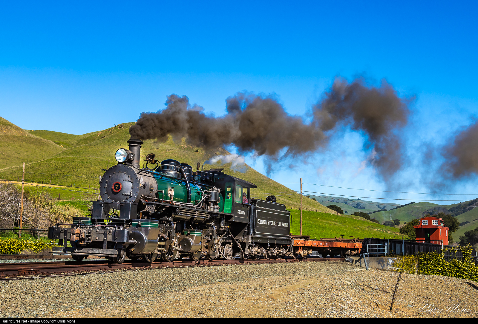 The 2-4-4-2 No. 7 The Skookum, rolls out of Niles Canyon into Niles Junction with a Photo Freight during a Pete Lerro Photo Shoot.