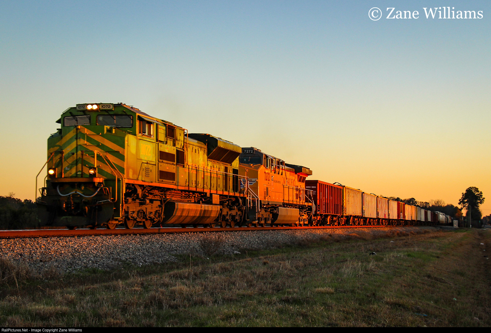 Just outside of Tifton, Norfolk Southern 1072 (Illinois Terminal Heritage Unit) leads NS 330 towards Macon, Georgia with with only a few minutes left of sunlight