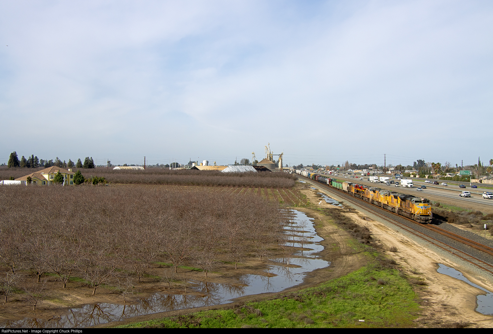 And eastbound manifest rolls along highway 99 at Keyes Ca.