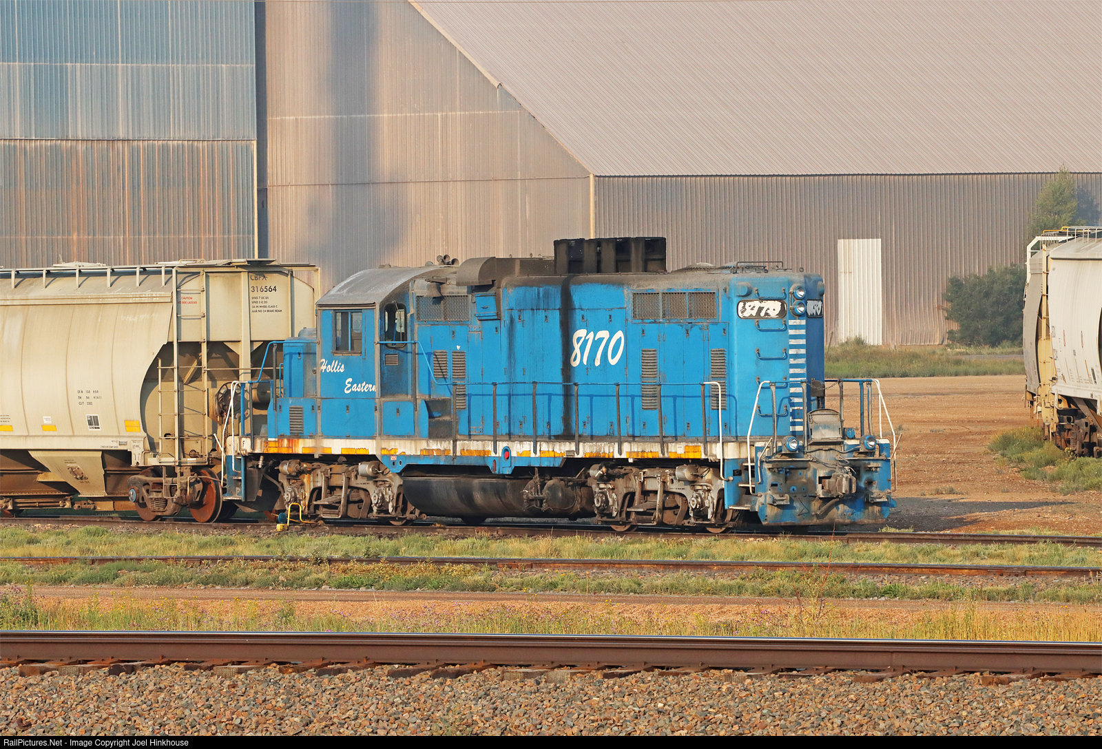 Hollis & Eastern has made its way from Oklahoma up to the cement plant southeast of Laramie WY for its next life. Built as Illinois Central 9170, it was rebuilt into a GP10, and numbered 8170, a number it kept through Chicago Central and then Hollis & Eastern.
