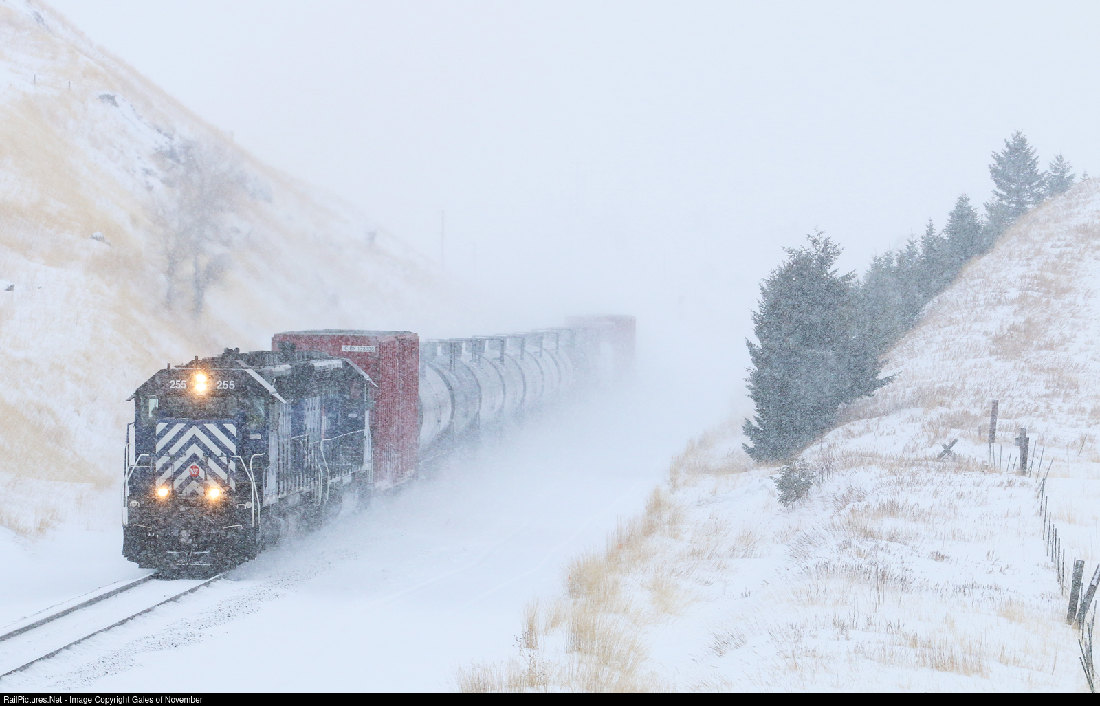We've all been there. You hike up to a spot, sometimes in snow up to your waist and check the angles with your camera. ERROR NO CARD. So you run back to the vehicle, thanking the lord you have backup cards. Normally this wouldn't be as big of a deal, as you could hear and see the train coming well in advance. With a blizzard howling, now its just up to luck. Arriving just in time, standard cab EMD's from a dying railroad thunder up the mountain, making all the effort worth it.