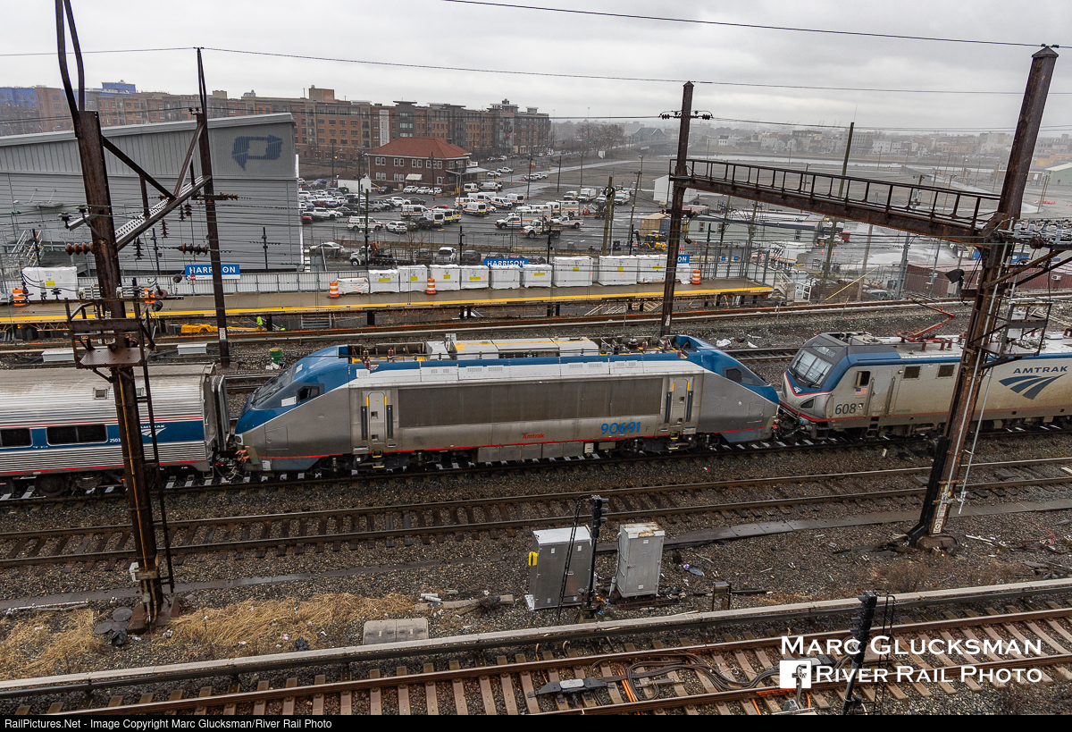 Hippo On The Move. In an unusual move, AMTK 608 (ACS-64) and 90691 (HHP-8/NPCU) were paired up on Train 43 (Pennsylvanian) out of New York Penn Station on the morning of Friday, January 13, 2023. The HHP-8 class were retired not long after the ACS-64 delivery was complete. This unit has been modified as an NPCU (Non Powered Control Unit) by Amtrak for possible future use on the railroad. The pair are seen passing through Harrison, New Jersey. The nickname "Hippo" comes from the shape of the engine as well as the HHP designation.