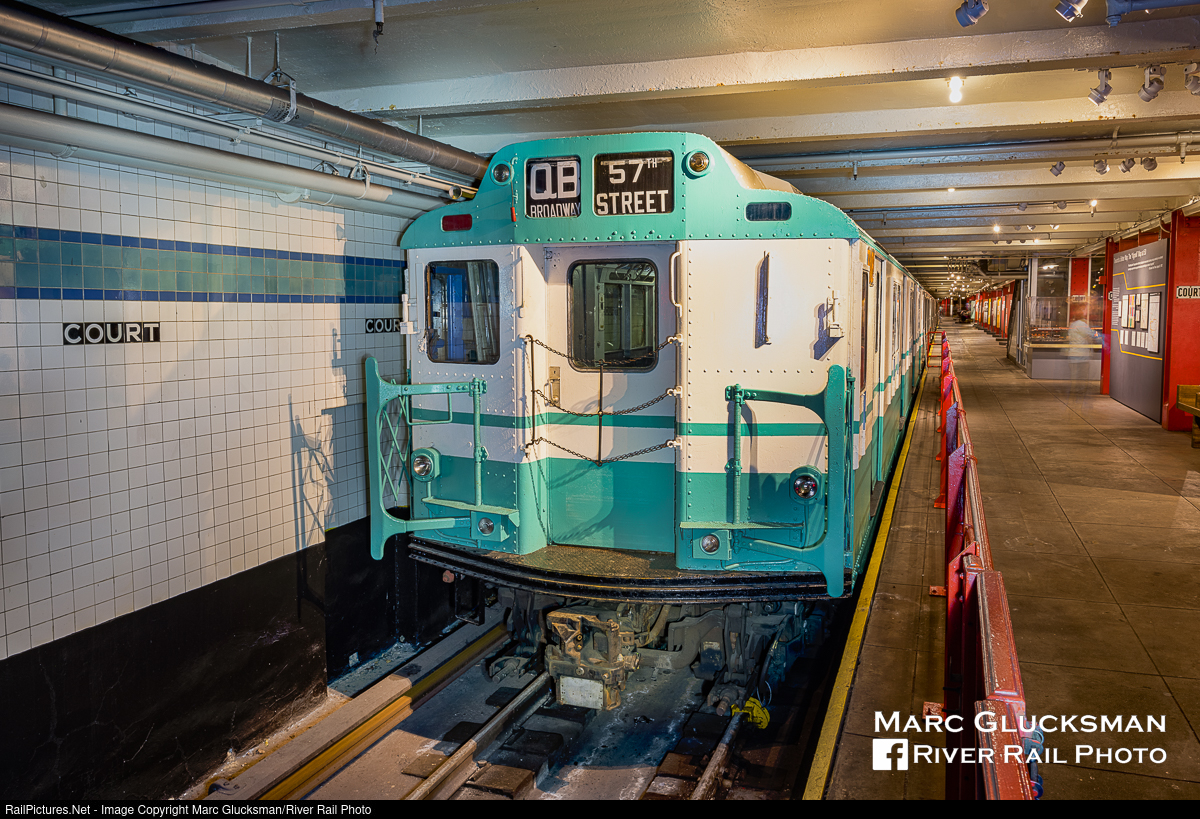 B Division World's Fair.. Metropolitan Transportation Authority - MTA NYCT Subway R-10 Car 3189 (ACF, 1948) was part of the first order of modern cars for the New York City Subway post-unification. The cars featured dynamic braking and a four motor design that helped with improved propulsion. This car was selected to have three-passenger transverse fiberglass interior seating installed in 1969. It survived as a school car in Pitkin Yard and was not part of the in-house rebuild program. Previously on display at the New York Transit Museum in Brooklyn, New York in 2007 when it wore an unusual light blue paint scheme, it made its restoration debut at the "Parade Of Trains" event in September, 2022 in the B Division (BMT/IND) version of the 1964 World's Fair paint scheme.