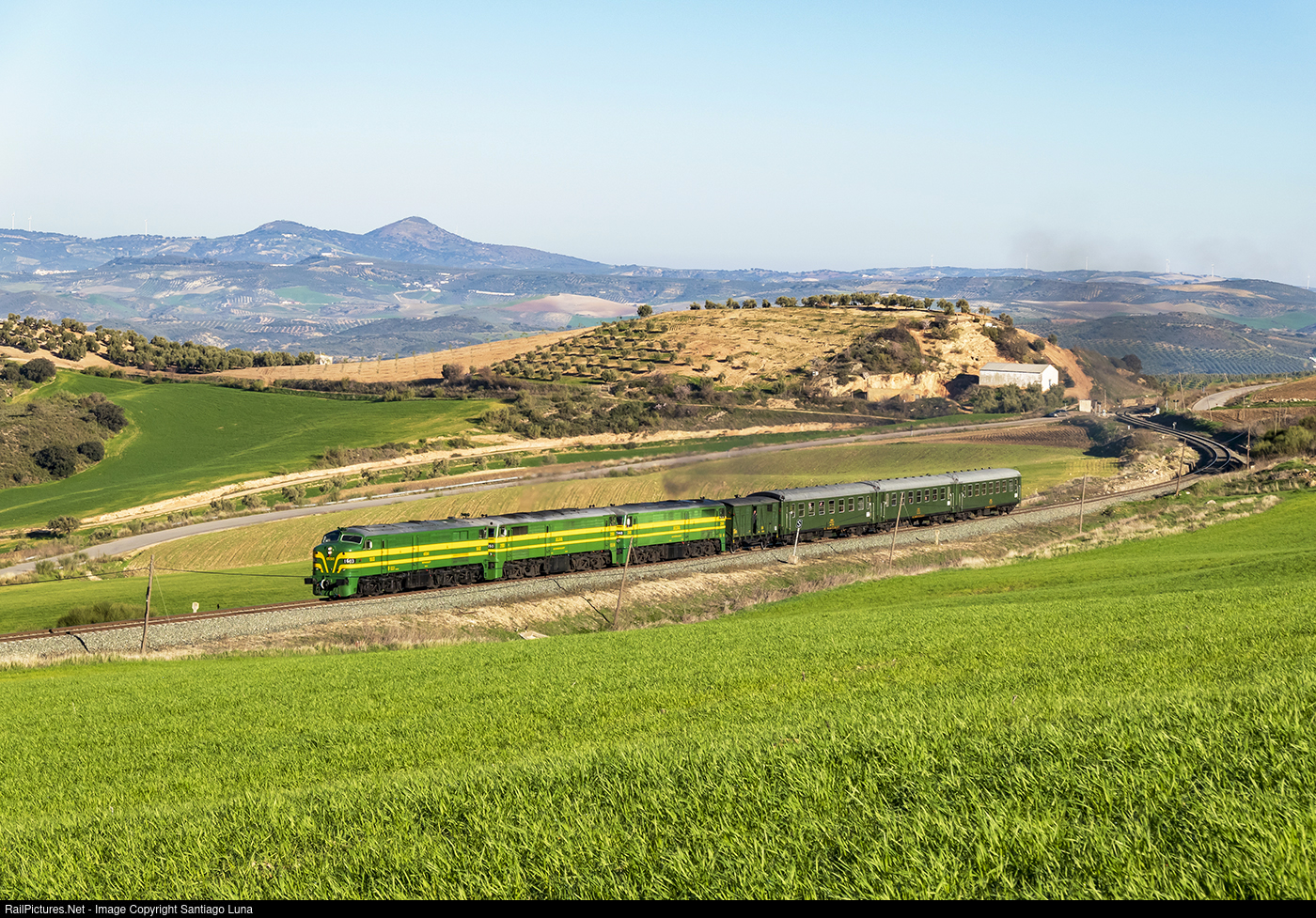 We had traveled to Andalusia to carry out an exhaustive monitoring of the circulation of the charter train rented by PTG Tours. As usual, each appearance of the train through the beautiful Andalusian landscapes produced a soothing effect on our battered "rail-amateur" spirit. Everything was going perfectly, but it could be even better if those in charge of the train decided to put the precious 1603 at the head of the train . It is true that between Almería and Granada it had led the composition, but when traveling at night it was unthinkable to take a worthwhile photo of it. To make matters worse, on that journey the train skipped the scheduled stop in Guadix where we were waiting for it with a whole array of tripods. The next day, more of the same and with tremendous disgust after hearing that in Linares they had separated this locomotive from the composition to refuel oil since, according to rumors, it had mechanical problems. On Wednesday, the elusive 1603 was leaving Malaga again behind its sisters but, at least, we were able to verify at the same station that the locomotive was idling so there was a remote possibility that it was leading the train between Bobadilla and Algeciras. When a friend confirmed that our wish had come true, we almost experienced it more as a disappointment than a joy. Because of the shadows in the morning we had to move to an alternative point where the "black nose" was guaranteed. While my companions moved through the bush looking for a better illuminated point, I began to become obsessed with a possible lateral framing and I did not pay due attention to them until they began to yell at me to come closer to where they were. As they are people with very good judgment, I started running through a muddy field as if I were thirty years younger and I arrived with more than enough time to take what I consider my best photo of this fabulous trip through Andalusia. Wonderful trains and even better friends, what more could you ask for?
