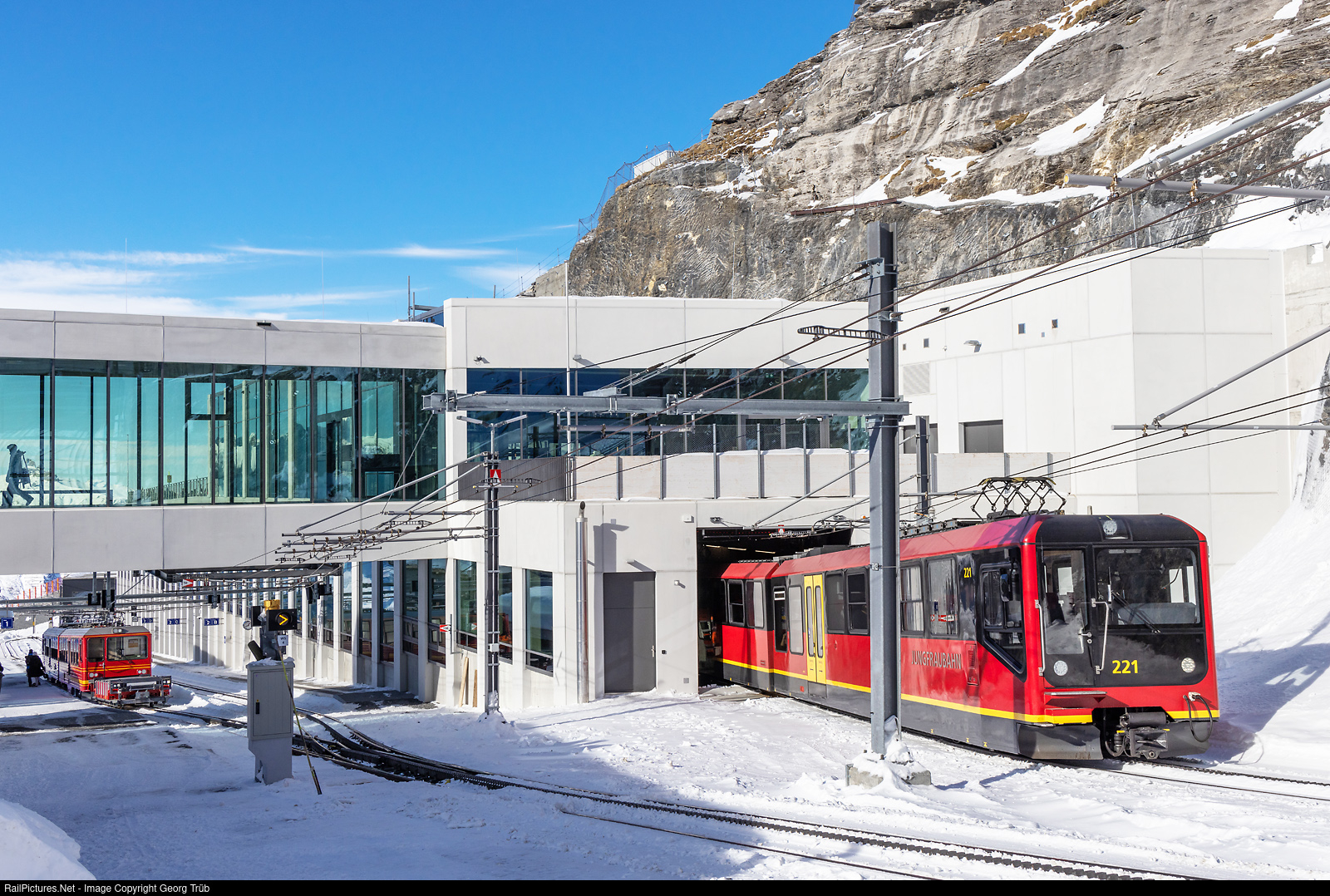 RailPictures.Net Photo: 221, 212, 214 Jungfraubahn Bhe 4/8, BDhe 4/8 at Eigergletscher, Switzerland by Georg Trüb