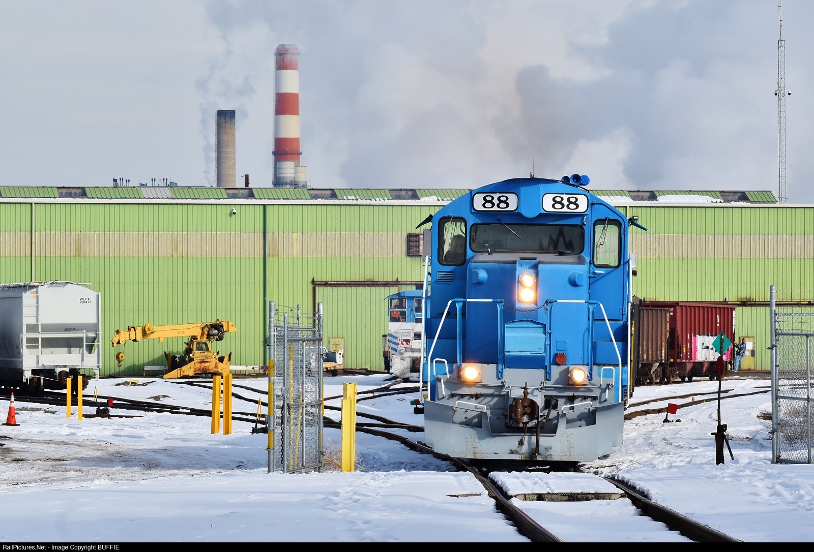 Denver Rock Island Railroad's #88 (GP9) moves a cut of cars a the yard in north Denver, Colorado.