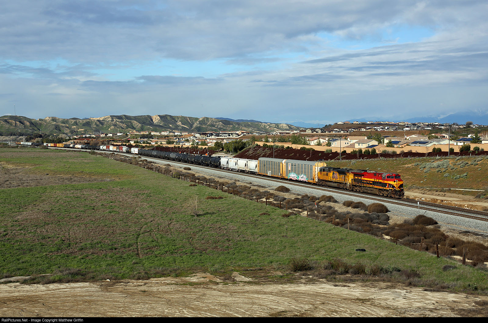 Westbound manifest freight MEWRV holds for a patch crew just west of Beaumont with KCS 5011 on the rear.