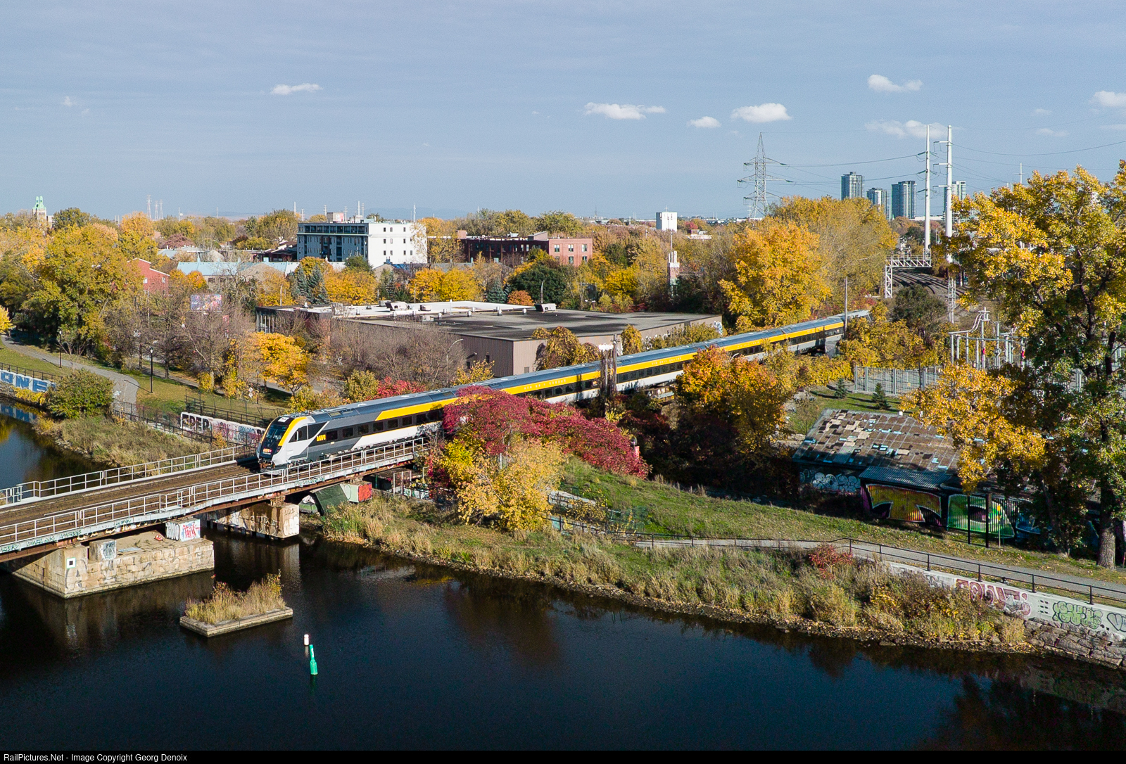 This was actually my first shot of the new VIA Rail Siemens Venture train set, and I almost missed it because it was so silent I did not hear it approaching, gliding past like a ghost. But luckily the track speed on the Montreal sub at Saint-Henri, crossing the Lachine Canal, is not too high, so this scene of the return trip to Montreal after an excusrion to Ottawa could be captured after all.