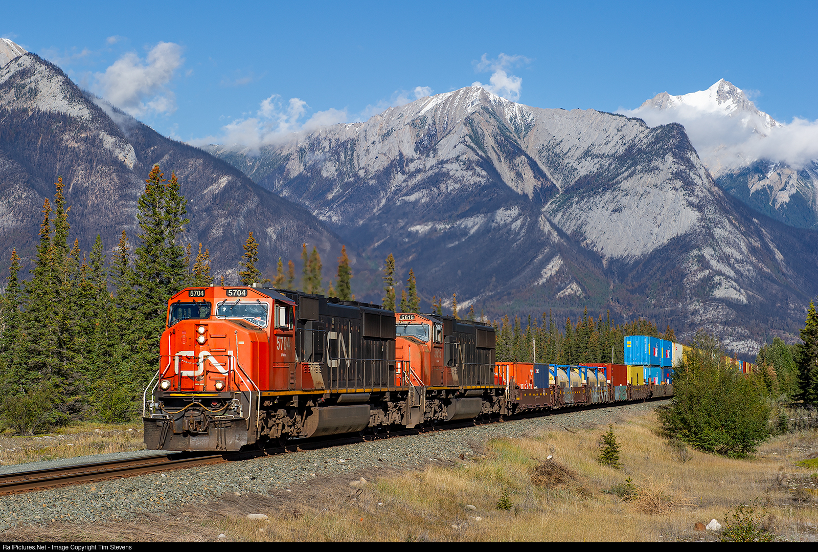 RailPictures.Net Photo: CN 5704 Canadian National Railway EMD SD75I at Jasper, Alberta, Canada by Tim Stevens