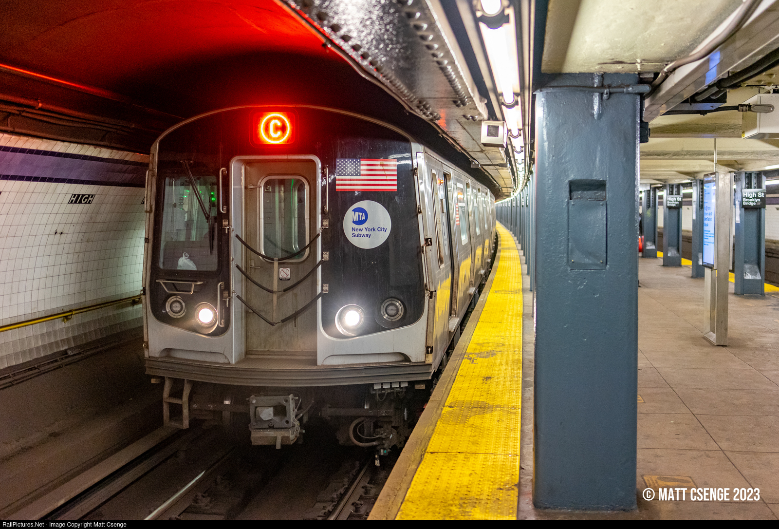 New York City Transit Authority (NYCTA) R179 no. 3226 (Bombardier, 2016-2019) is the lead motor on a Manhattan-bound C train, seen here stopped at High St-Brooklyn Bridge Station on the 8th Avenue Line. |