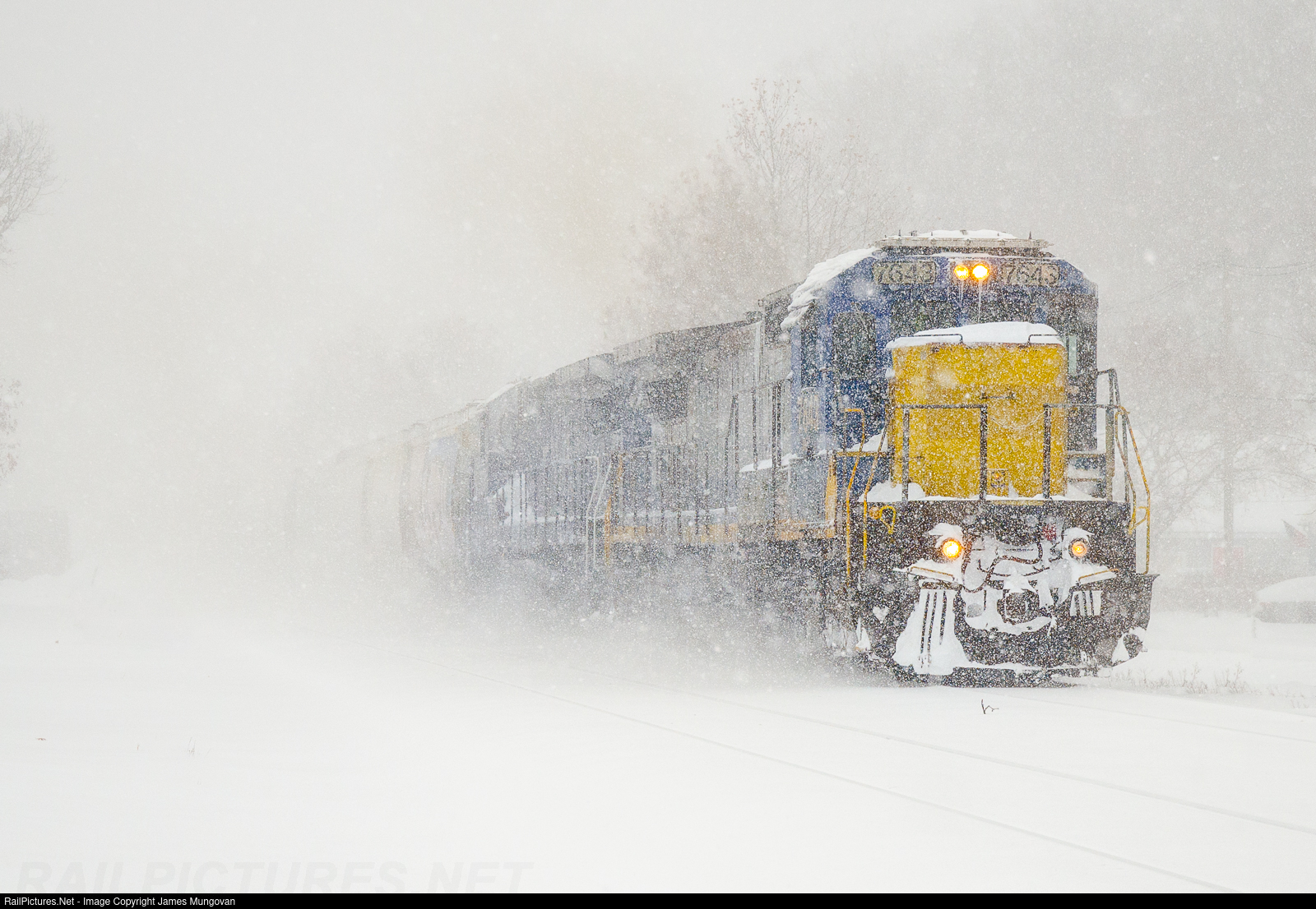 PanAm train EDPO (East Deerfield-Portland) storms through Shirley Massachusetts during a severe blizzard that affected the area.
