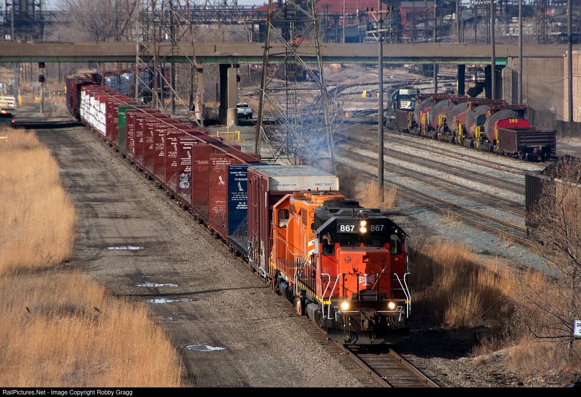 BLE SD38AC 867 leads CN L512 East through East Chicago.