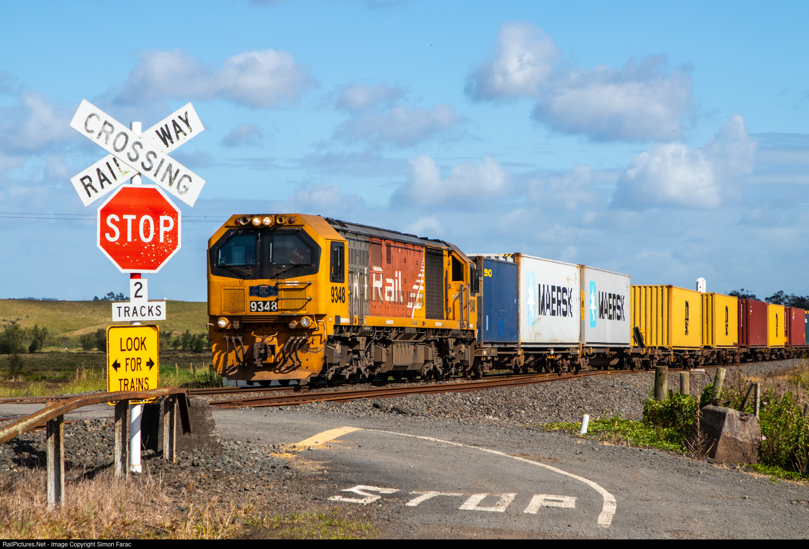 Trains on 3' 6" (1.067m) track from Whangarei to Bluff with virtually heritage rebuilt EMD and GE locomotives still the mainstay power. The network was privatized in 1990's and operated by Toll until 2008 when state owned KiwiRail was established.