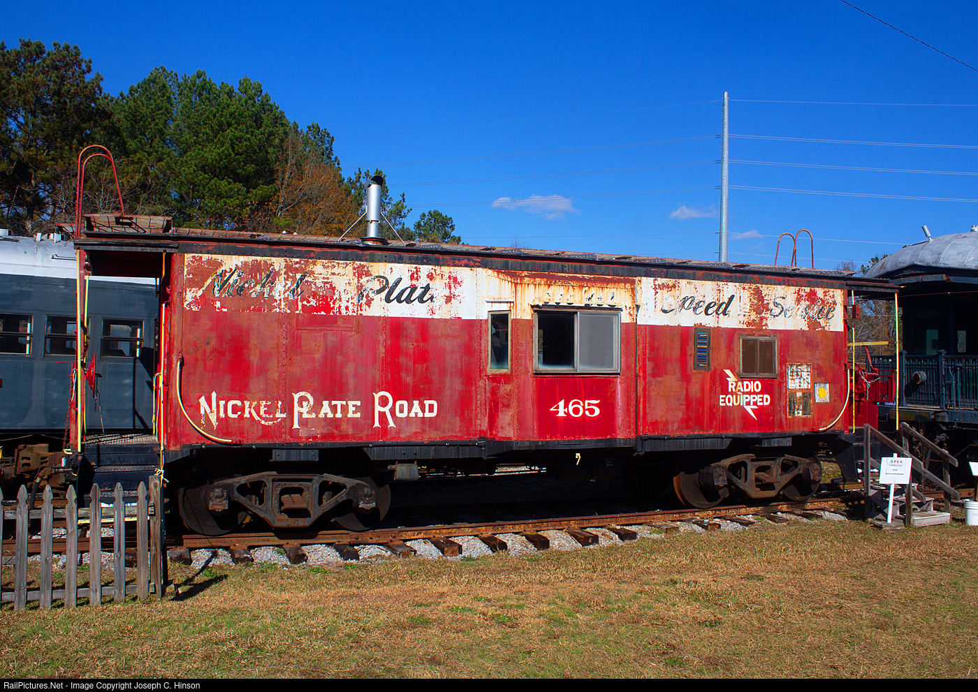 | Nickel Plate Road #465 is a steel bay window caboose that somehow found it's way to the South Carolina Railroad Museum where it sits on display in Winnsboro. It was built in 1962 in Kenton, Ohio by International Car for the New York, Chicago and St. Louis Railroad, more commonly known as the Nickel Plate Road. |