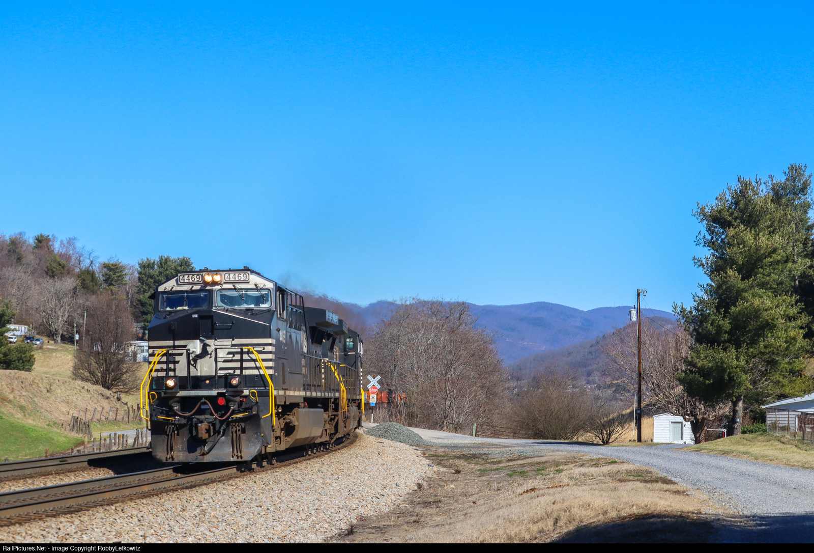 NS 279 rounds the curve and heads up the grade at John Farm in Shawsville, VA. This train had been sitting in Roanoke for multiple hours, as the train had some mechanical issues. |