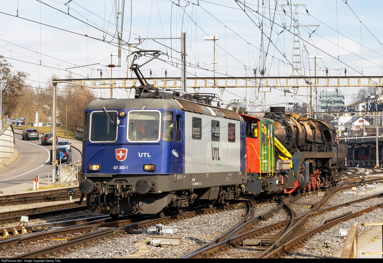 RailPictures.Net Photo: 421 383, 52 8055 Untitled Re 421, Steam 2-10-0 at Schaffhausen, Switzerland by Georg Trüb