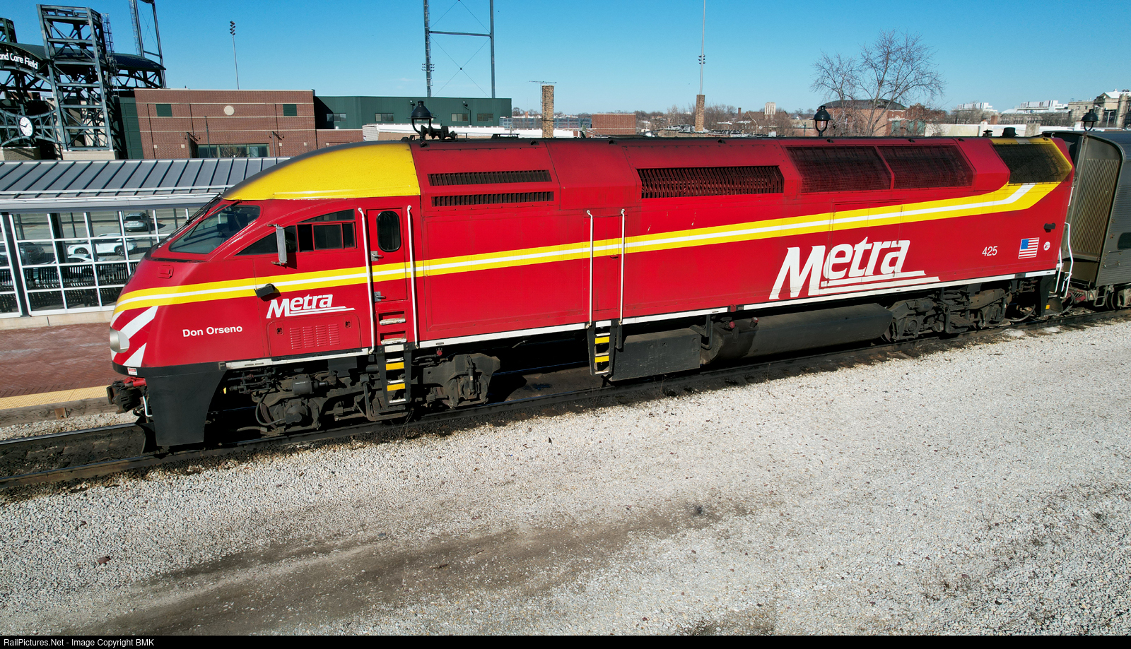 METX 425 Rock Island heritage unit waits for departure time back to the city.