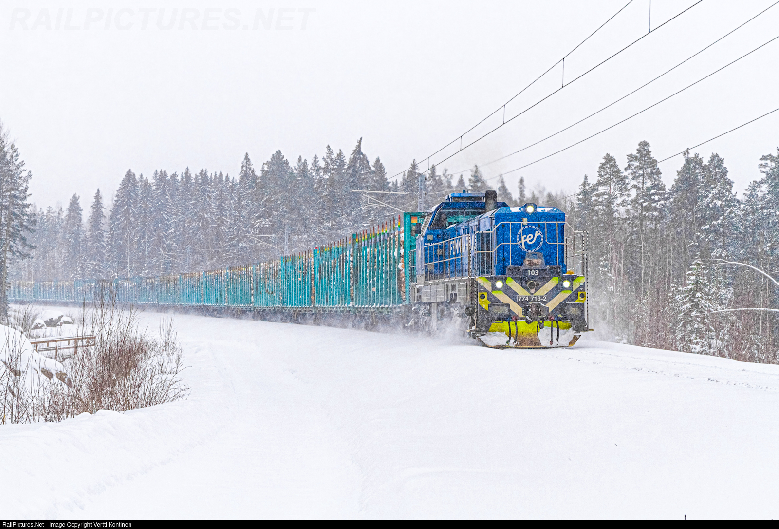 Dr18 103 running through a snow storm with freight train T 7146 from Suolahti to Kouvola