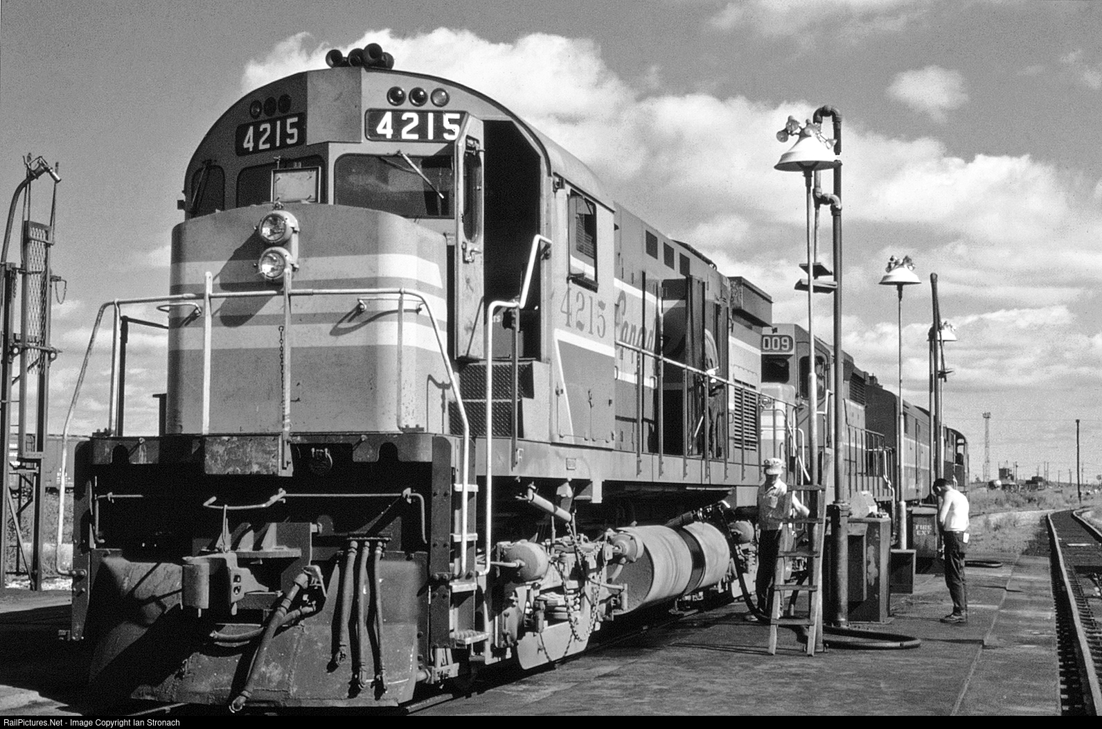 | Power off an arriving train is serviced at the fueling and sanding pad known as "The Coal Chute". The adjacent coaling tower, not used since 1960, was demolished over twenty years ago but today power is still fueled at "The Coal Chute". |