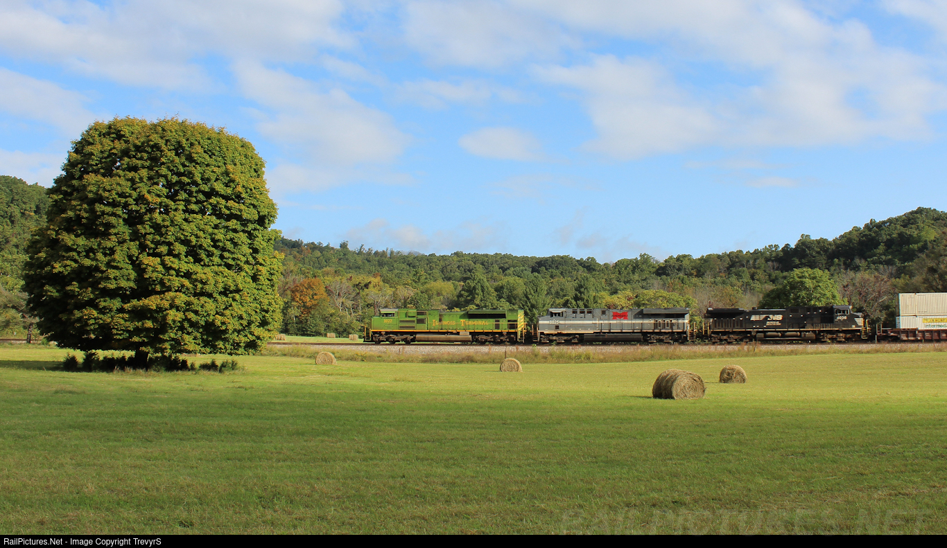 NS 201 passes the "big tree" in Elliston, VA. The train is led by two heritage units-the 1072 Illinois Terminal and the 8025 Monongahela. The train was originally led by 8025 and the AC44C6M, but the C6M was having trouble around Roanoke, which led to them tacking on 1072 for extra power.