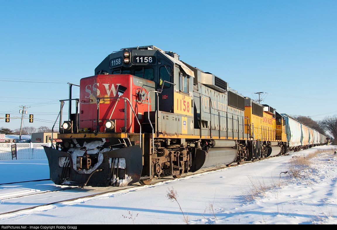 Patched Cotton Belt 1158 leads the SoBo local North out of South Beloit.