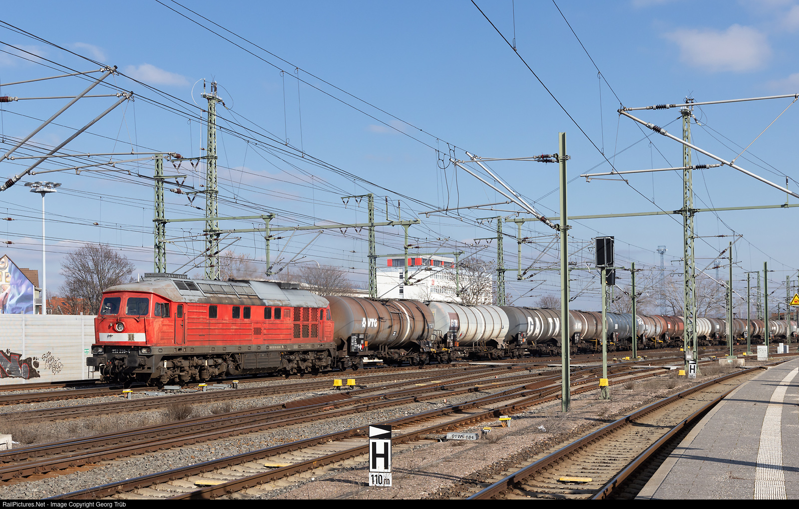| "Ludmilla" diesellocomotive 232 # 239 of the Erfurter Bahnservice Gesellschaft mbH (EBS) is leaving Erfurt freight yard with a tank car train. The locomotive was built by Lokomotivfabrik Lugansk (former Woroschilowgrad) for the Deutsche Reichsbahn of the German Democratic Republic (GDR) as 132 # 239. From 1994 running for the Deutsche Bahn as 232 # 239, in 2005 sold to MEG - Mitteldeutsche Eisenbahn GmbH, Schkopau. Since 2016 with the EBS in Erfurt. |