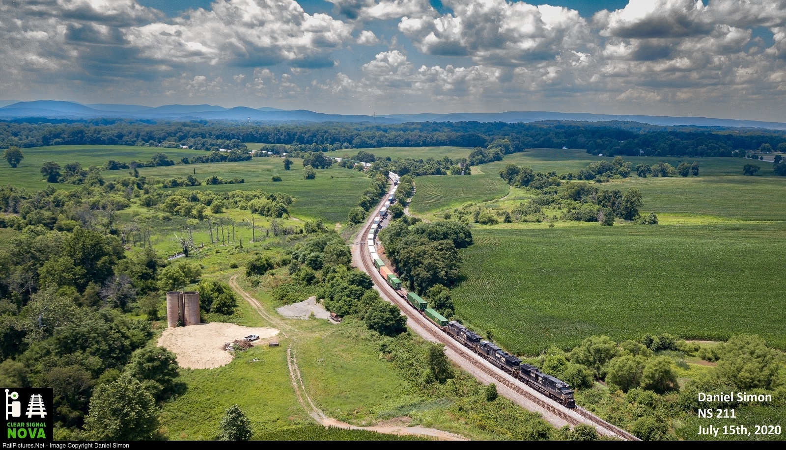 Norfolk Southern Train 211 rolls through the crop fields along the NS B-Line just outside of The Plains, VA on a hot summer day.