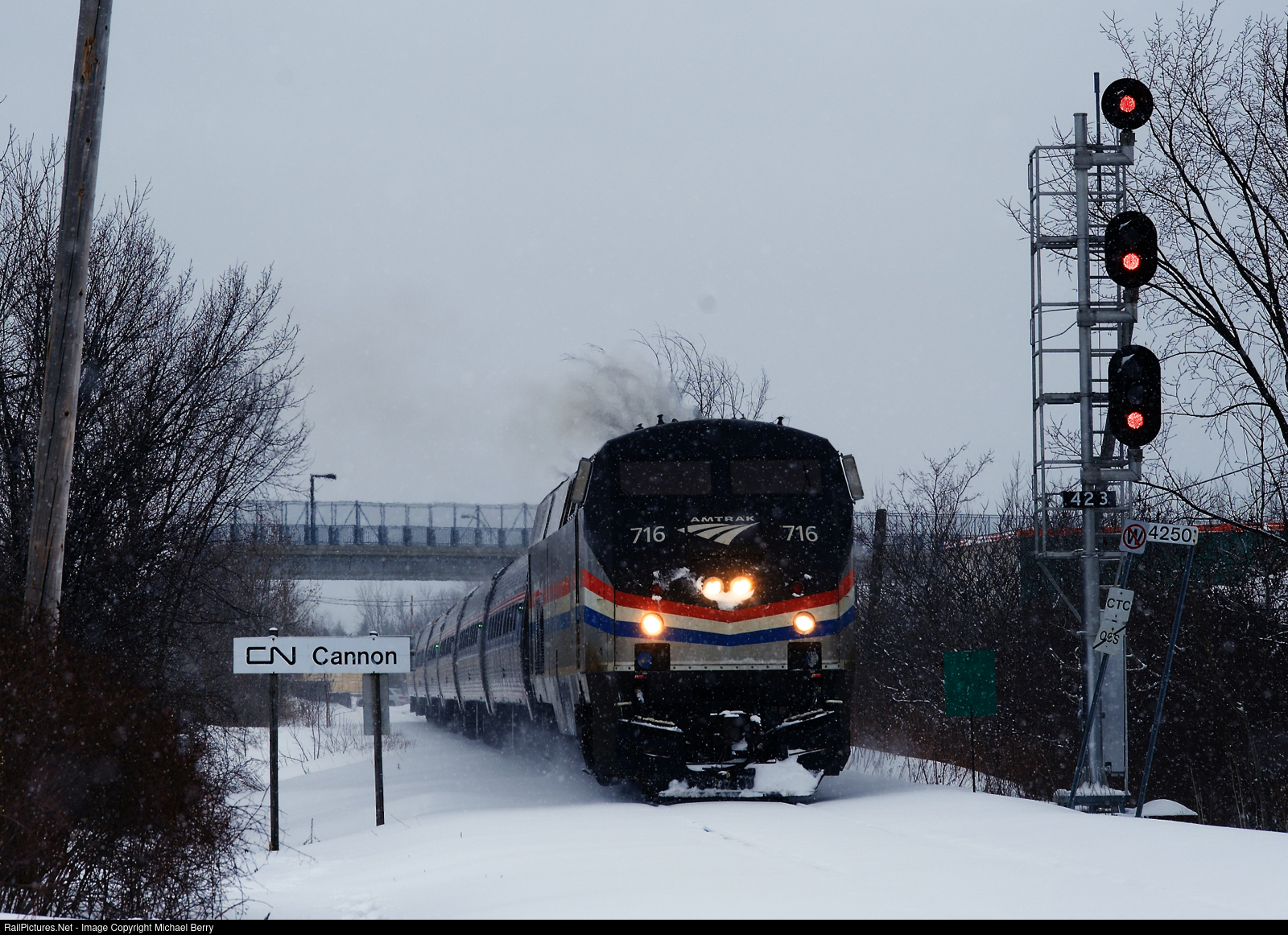 RailPictures.Net Photo: AMTK 716 Amtrak GE P32AC-DM at Longueuil, Quebec, Canada by Michael Berry