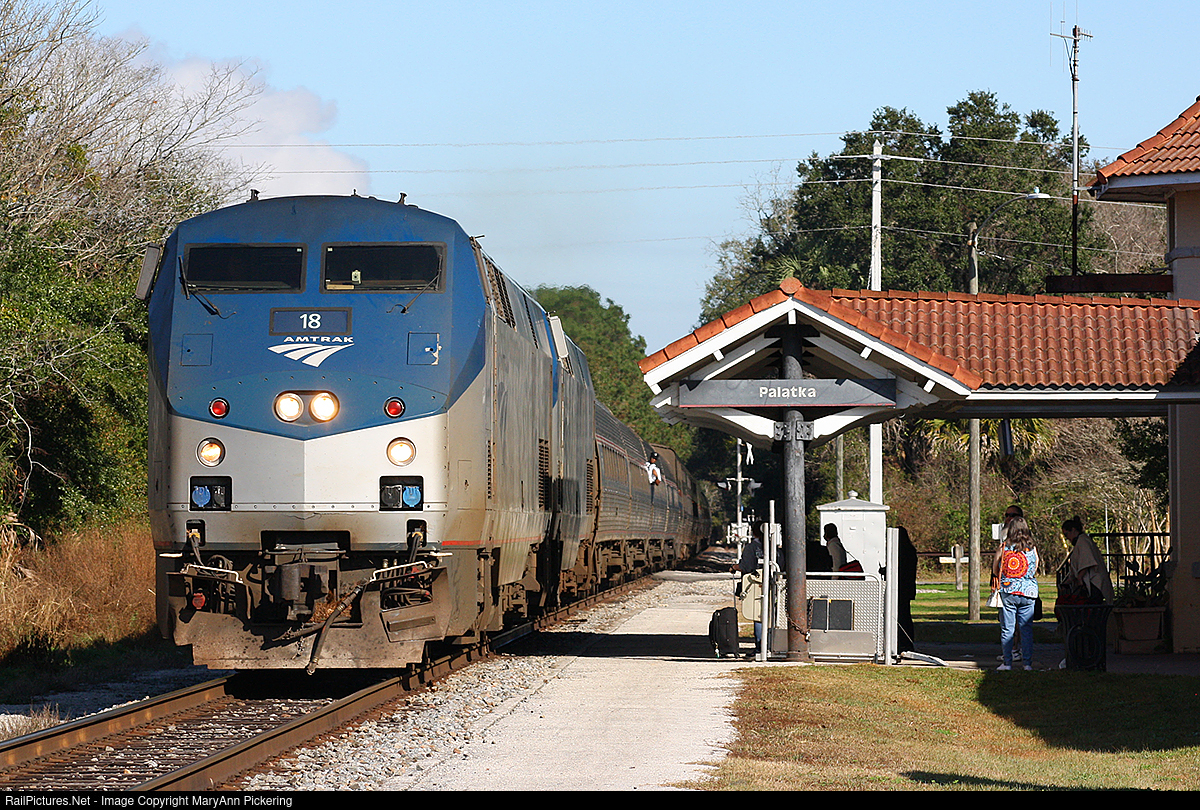 RailPictures.Net Photo: AMTK 18 Amtrak GE P42DC at Palatka, Florida by MaryAnn Pickering
