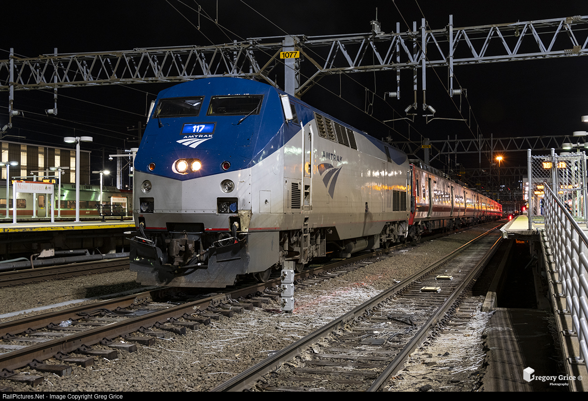 On the morning of March 7th, 2023, Amtrak Extra 846 sits on the alleyway at New Haven Union Station after towing six Metro-North/ CDOT Kawasaki M8 railcars from Long Island Rail Road's Arch Street Shops to New Haven Union Station via New York Pennsylvania Station. The train consisted of Amtrak GE P42 #117 followed by M8 railcars 9420/9421,9702/9703,9430/9431 which were operated in test service by the LIRR/Amtrak in anticipation of future Metro-North service between New Rochelle and New York Penn Station.