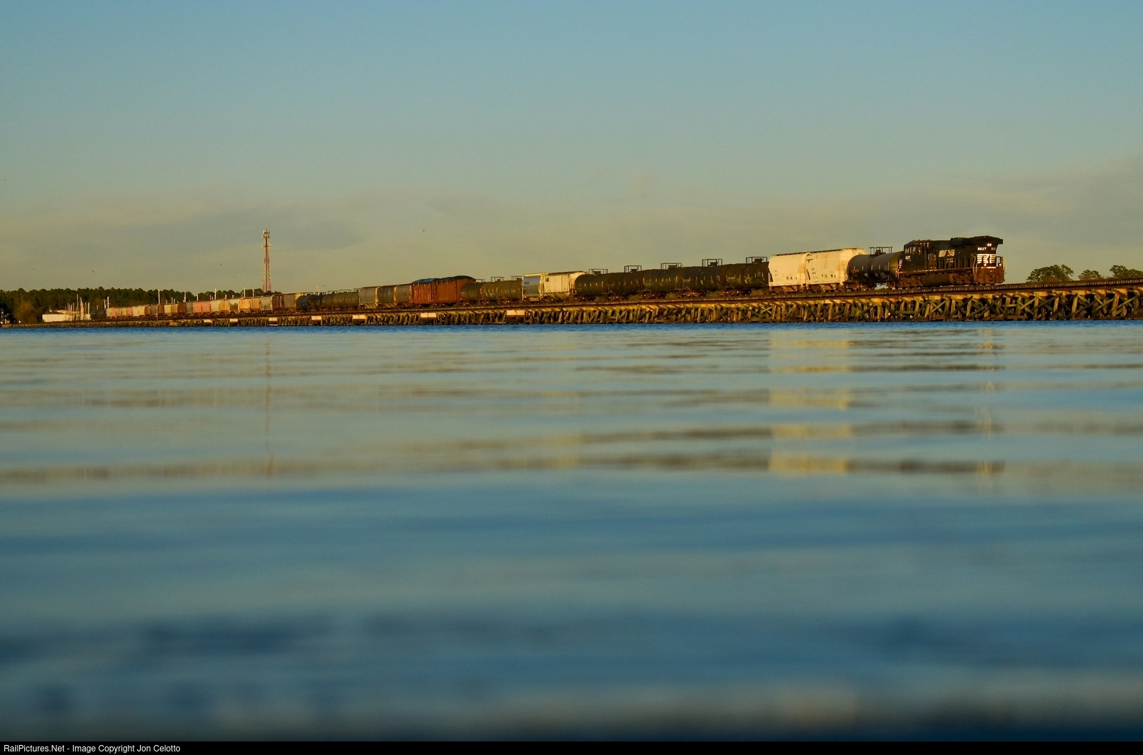| A shot and angle I've done plenty of times before, but will never get tired of. With an actually decent sized train for once, P97 rolls over the Neuse in pristine golden light. |