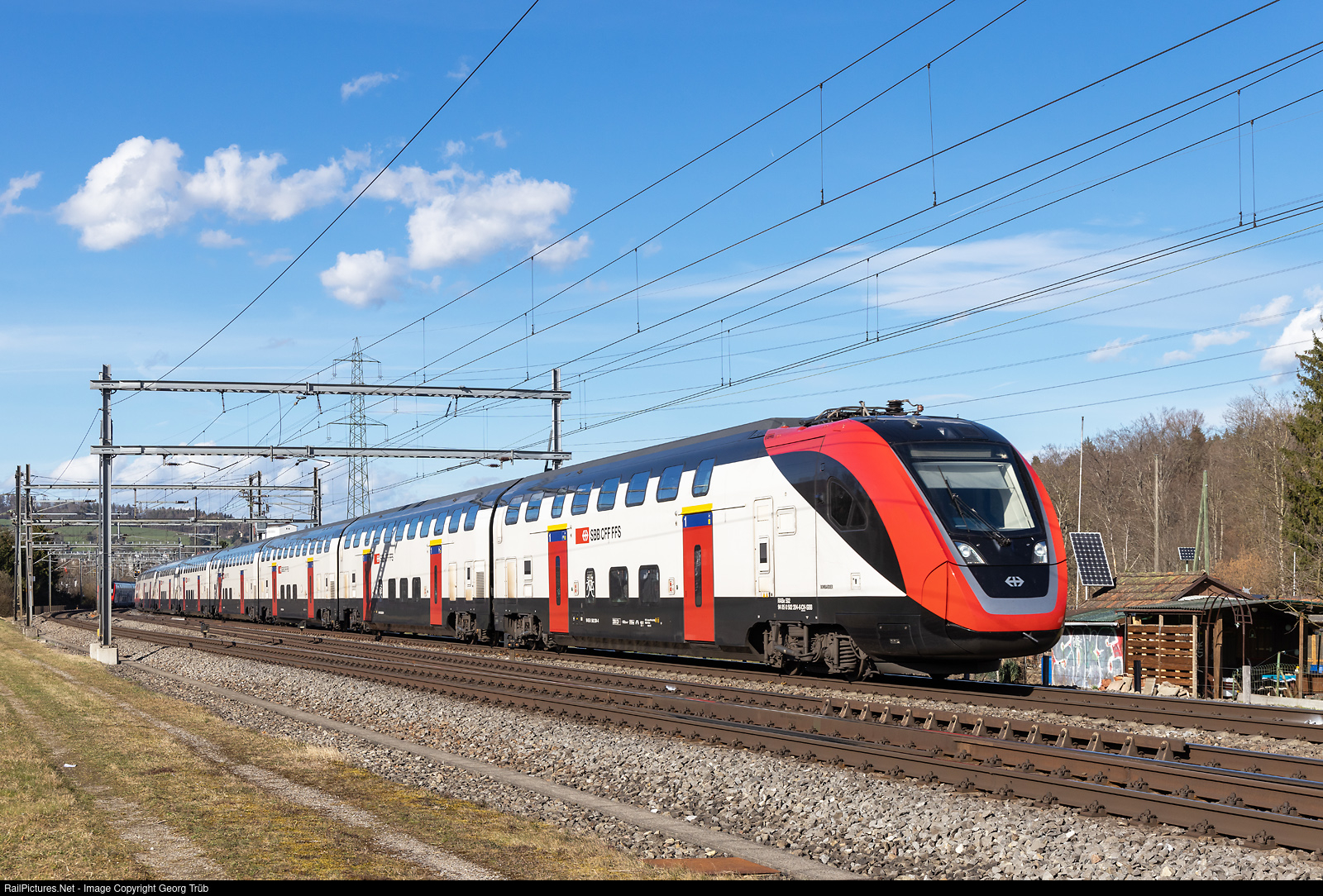 "FVD" doubledeck train RABe 502 # 204 (IR200) of the SBB as train IR 3272 of the line IR 75 from Altstätten via St.Gallen-Winterthur-Zürich-Zug to Lucerne, in Winterthur Tössmühle. Because of a several months line interruption between Buchs SG and Altstätten for partly doubletracking work, this IR trains circulate between Altstätten and Lucerne/Buchs SG and Chur only. Alstom (which took over the project from Bombardier 1 1/2 years ago) and SBB reached an agreement a few days ago on compensation for the massively delayed delivery of these 62 trains (RABe 502/RABDe 502). SBB will receive services like spare parts, longer maintenance by Alstom, support for trainings, work for improvement of running characteristics etc. in the value of about 6 trains (about 190 million Sfr.).