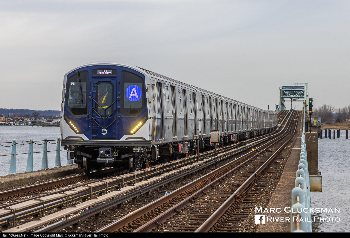 Some Day Is Today. Since the first 5 Metropolitan Transportation Authority (MTA) NYCT Subway Kawasaki R-211s were delivered on July 1, 2021, they have been through extensive testing all over the system. On Friday, March 10, 2023, the first revenue run was performed on the A Line from 207 Street in Manhattan to Far Rockaway-Mott Avenue in Queens, New York. The train is seen crossing the North Channel Swing Bridge over Jamaica Bay from Hamilton Beach towards Broad Channel in Queens, New York. From its inception in 1880 until a significant fire in 1950 and its ultimate departure from these rails in 1955, the Long Island Rail Road had operated the Rockaway Beach Branch through a variety of service patterns, including via Ozone Park and the Far Rockaway Branch. Beginning on June 26, 1956, the track was rehabilitated by the TA, and is presently served by the “A” Line and a shuttle from Rockaway Park/Beach 116 Street. The R-211 represents the next generation of New York City Subway cars, with varieties that include these semi-permentantly coupled 5 car sets as well as open gangway 5 car sets already delivered. The next variation to arrive will be the R-211S for Staten Island Railway.