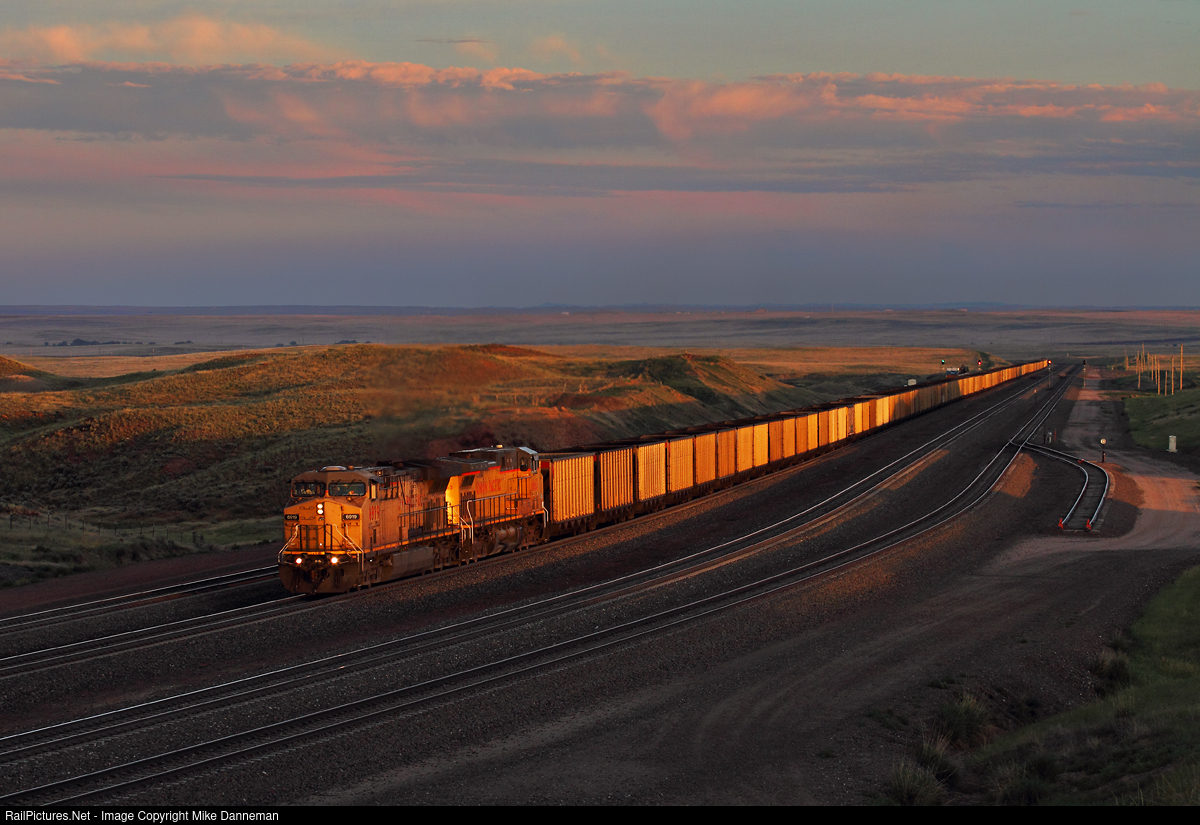The sun is low to the horizon in Powder River Basin as a Union Pacific coal empty growls over Logan Hill north of Bill, Wyoming, on the eve of July 2, 2016.