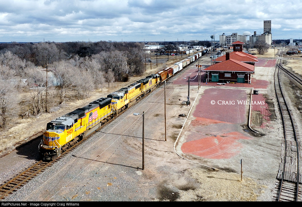 Salina once played host to 4 different railroads. The Union Pacific, Santa Fe, Missouri Pacific, and Rock all came into Salina. All 4 railroads had trackage just east of the depot, but only the ex-ATSF and UP tracks remain. Today only 3 railroads come to Salina with the UP being the big boy in town. Shortlines KYLE and K&O also start and end here with an interchange to the UP.