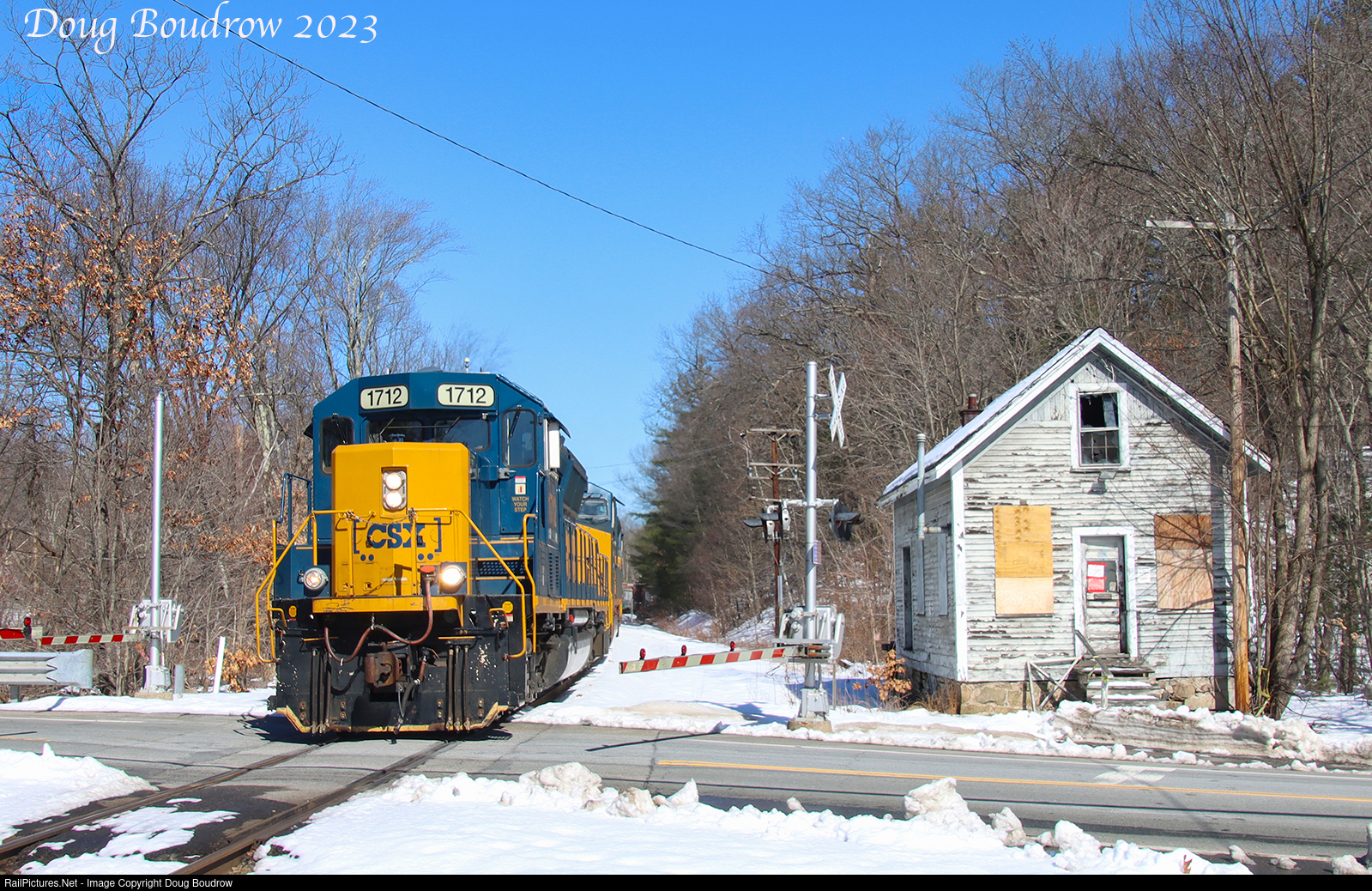 | Waterville, Maine to Selkirk, New York manifest train M427 is seen rolling through Chelmsford crossing School Street.