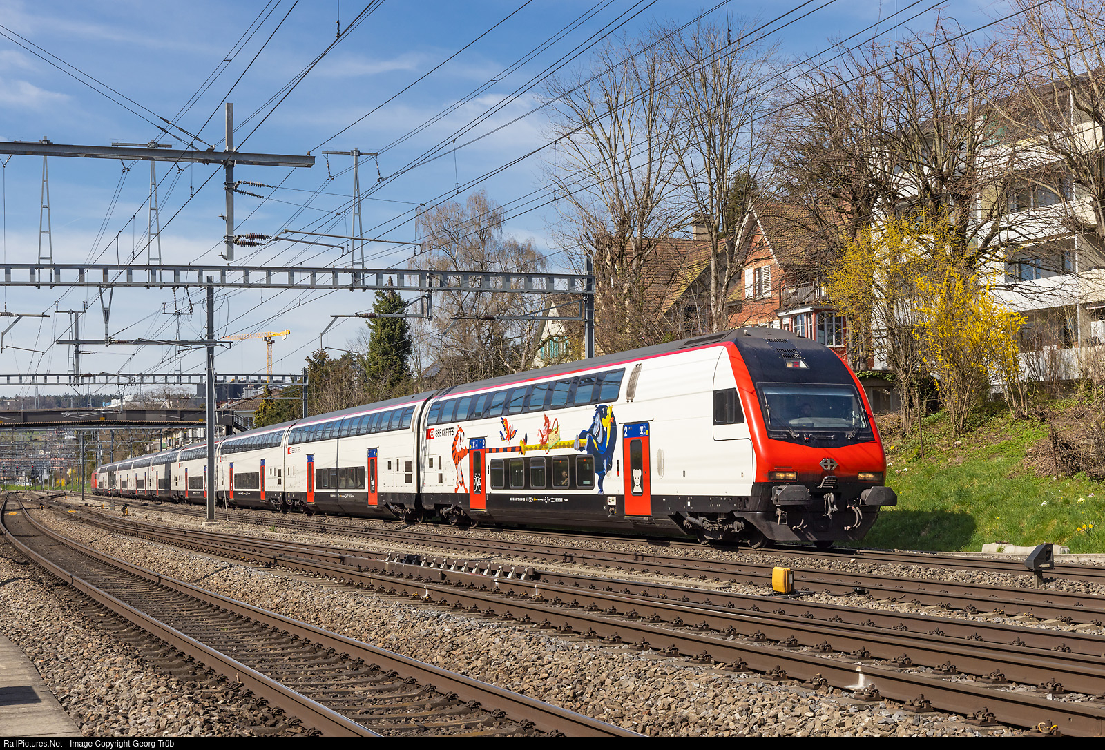 | "IC2020" push-pull train IR 2119 of the line IR75 from Lucerne via Zürich to Constance, between Winterthur and Oberwinterthur. Leading is cab car Bt2E 26-94 # 919 and in the rear is Re 460 # 003 shoving. |